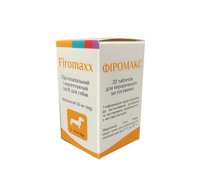 ФІРОМАКС – нестероїдний протизапальний засіб на основі фірококсибу, що є селективним інгібітором ЦОГ-2 (циклооксигенази-2). Механізм дії фірококсибу полягає у вибірковому порушенні утворення простагландинів, що беруть участь у формуванні запальної реакції, та пригніченні проліферативної і ексудативної фази запалення. Переважно діє у вогнищі запалення і дуже слабо впливає на продукцію простагландинів, що регулюють нирковий кровообіг і цілісність оболонки шлунково-кишкового тракту. Має протизапальну, аналгетичну та антипіретичну дії.